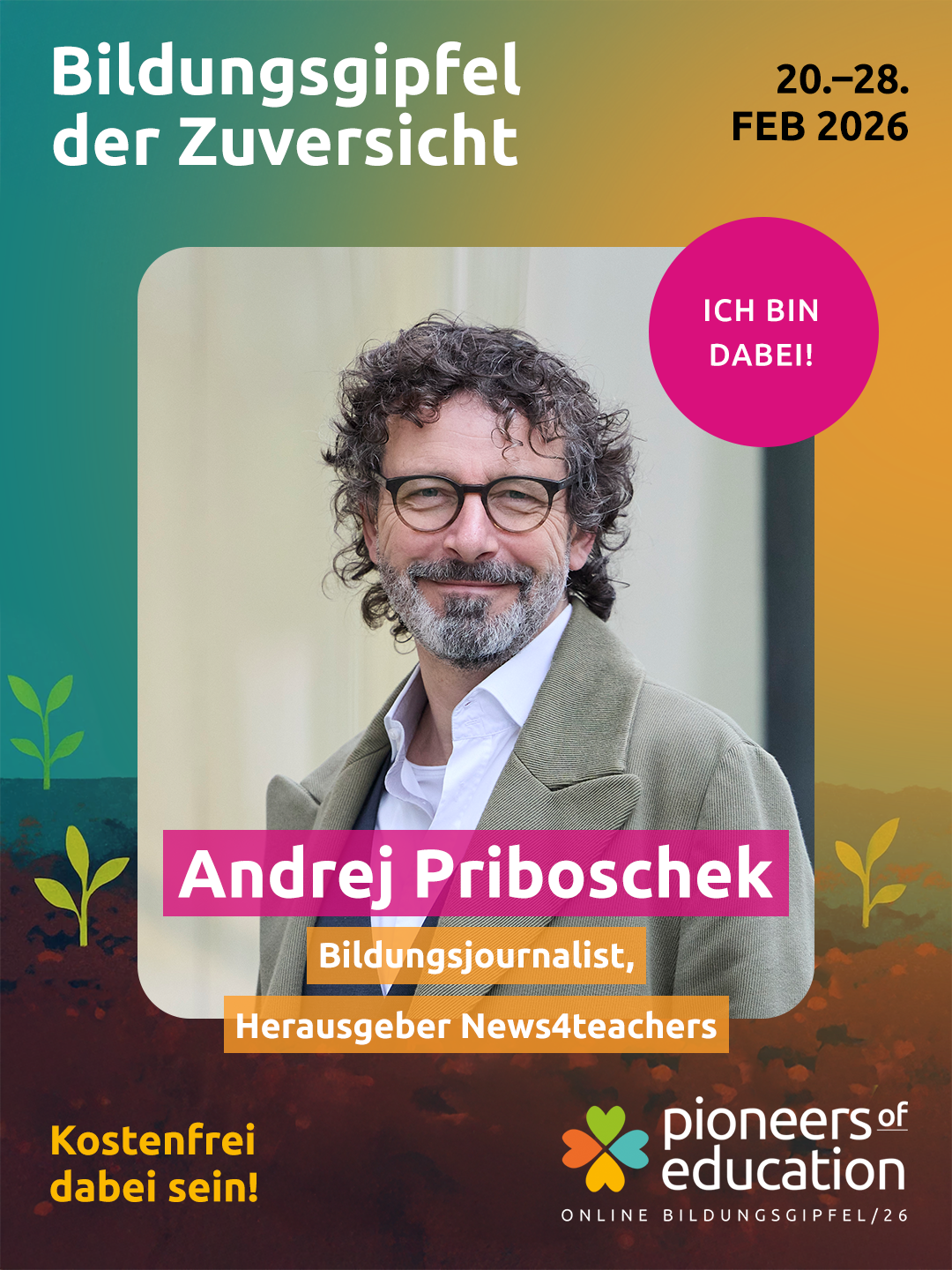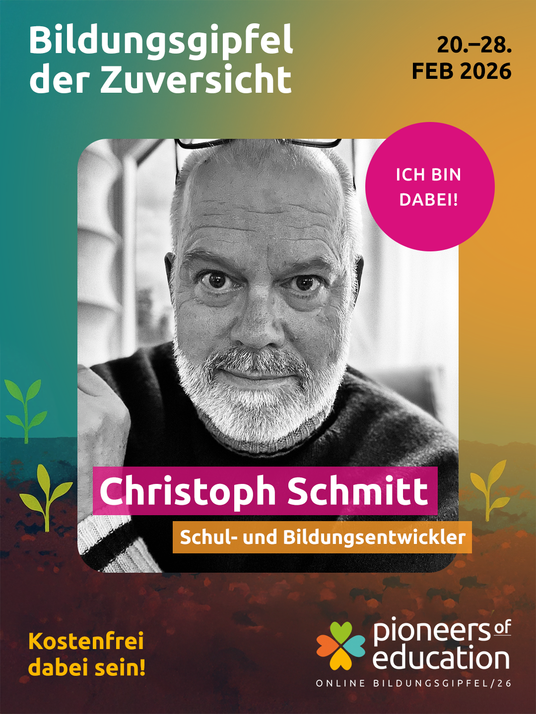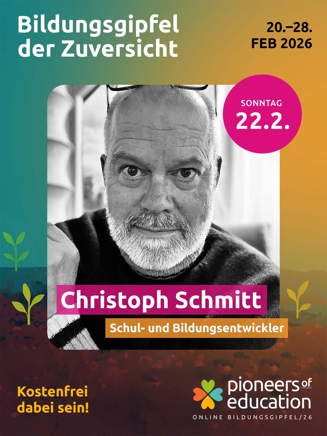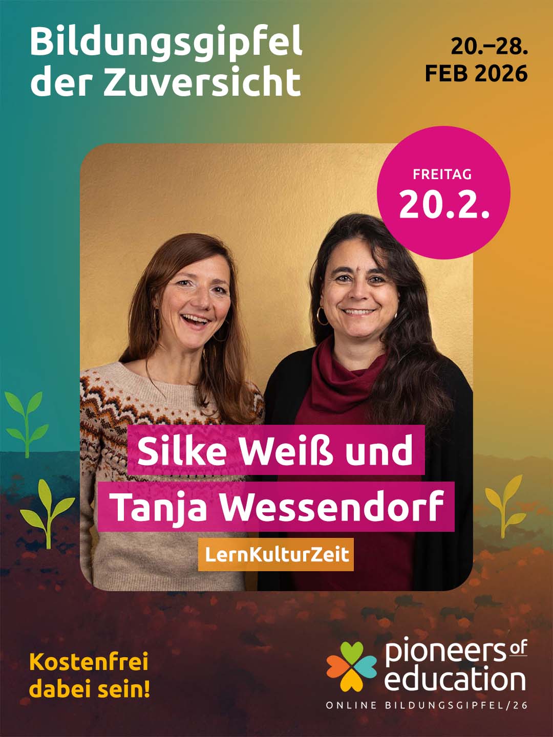 Vom 20.-28. Februar 2026 erwarten Dich beim Bildungsgipfel der Zuversicht 30+ inspirierende Interviews, praxisnahe Einblicke in Schulen und Workshops und lebendige Austauschformate – offen für Lehrkräfte, Eltern, Schüler:innen, Studierende und alle, die Bildung mitgestalten möchten.
