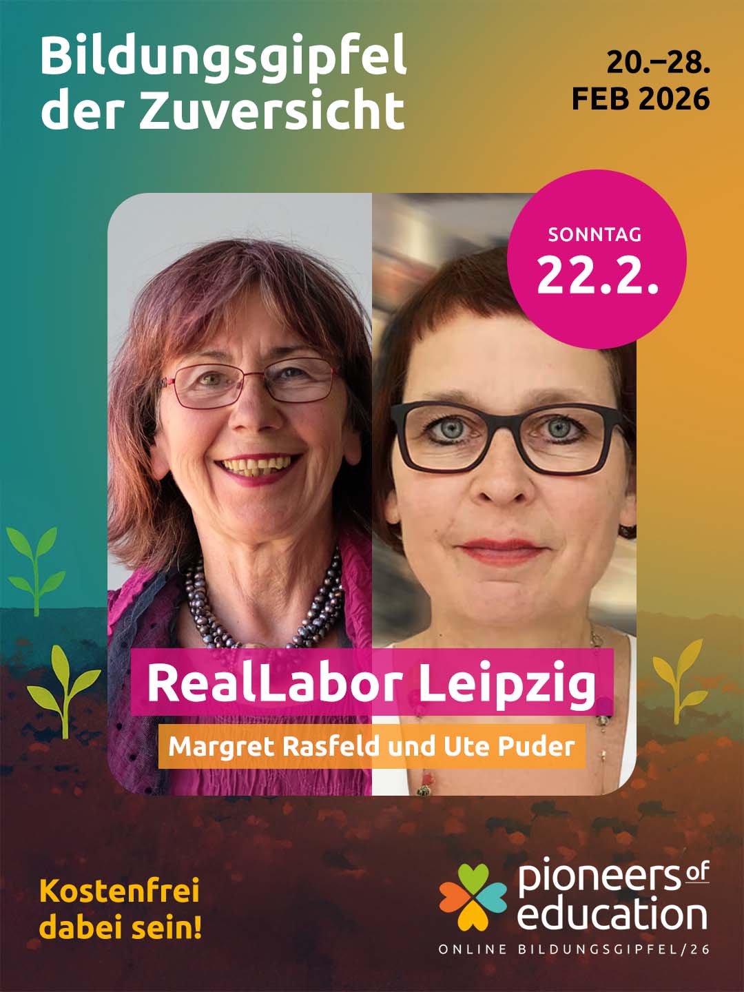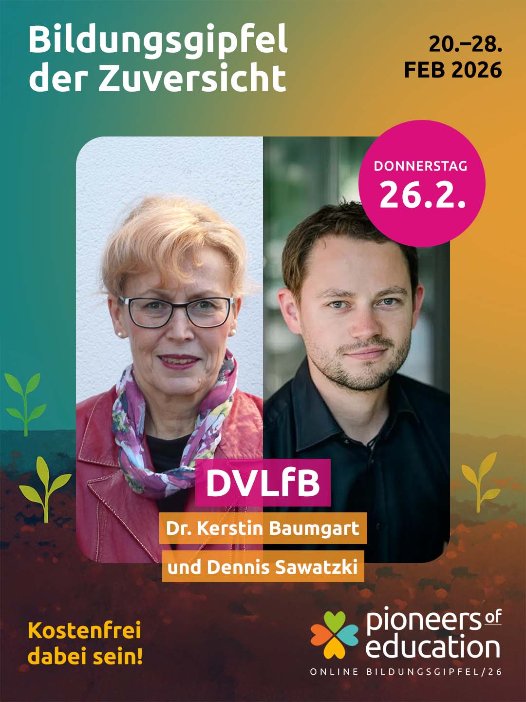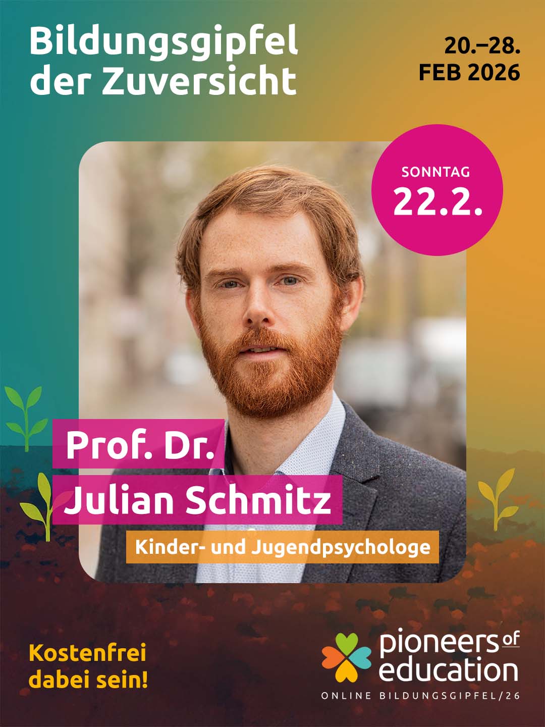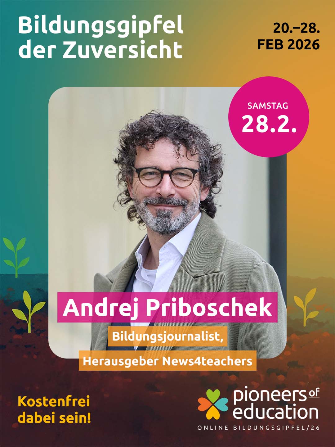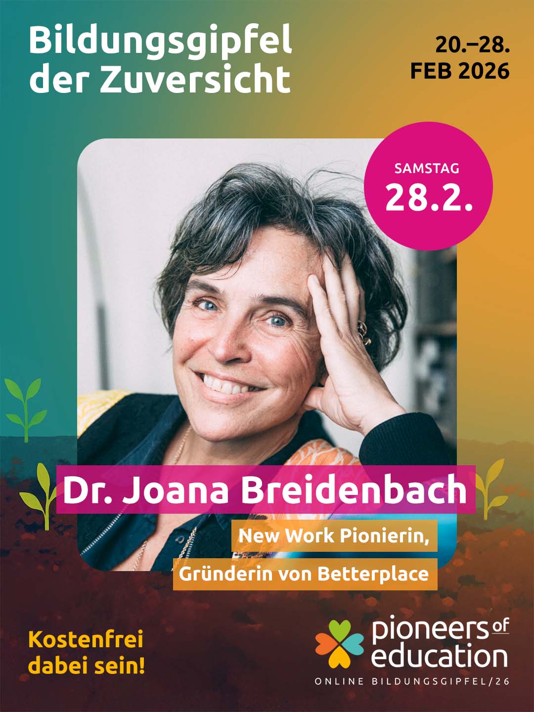 Vom 20.-28. Februar 2026 erwarten Dich beim Bildungsgipfel der Zuversicht 30+ inspirierende Interviews, praxisnahe Einblicke in Schulen und Workshops und lebendige Austauschformate – offen für Lehrkräfte, Eltern, Schüler:innen, Studierende und alle, die Bildung mitgestalten möchten.