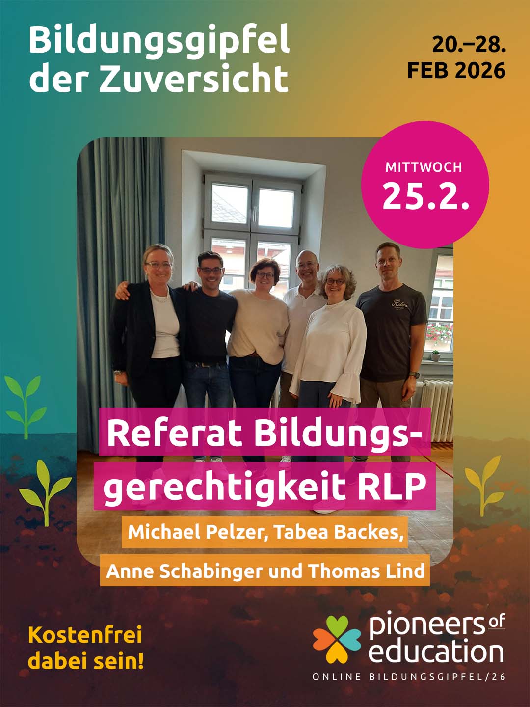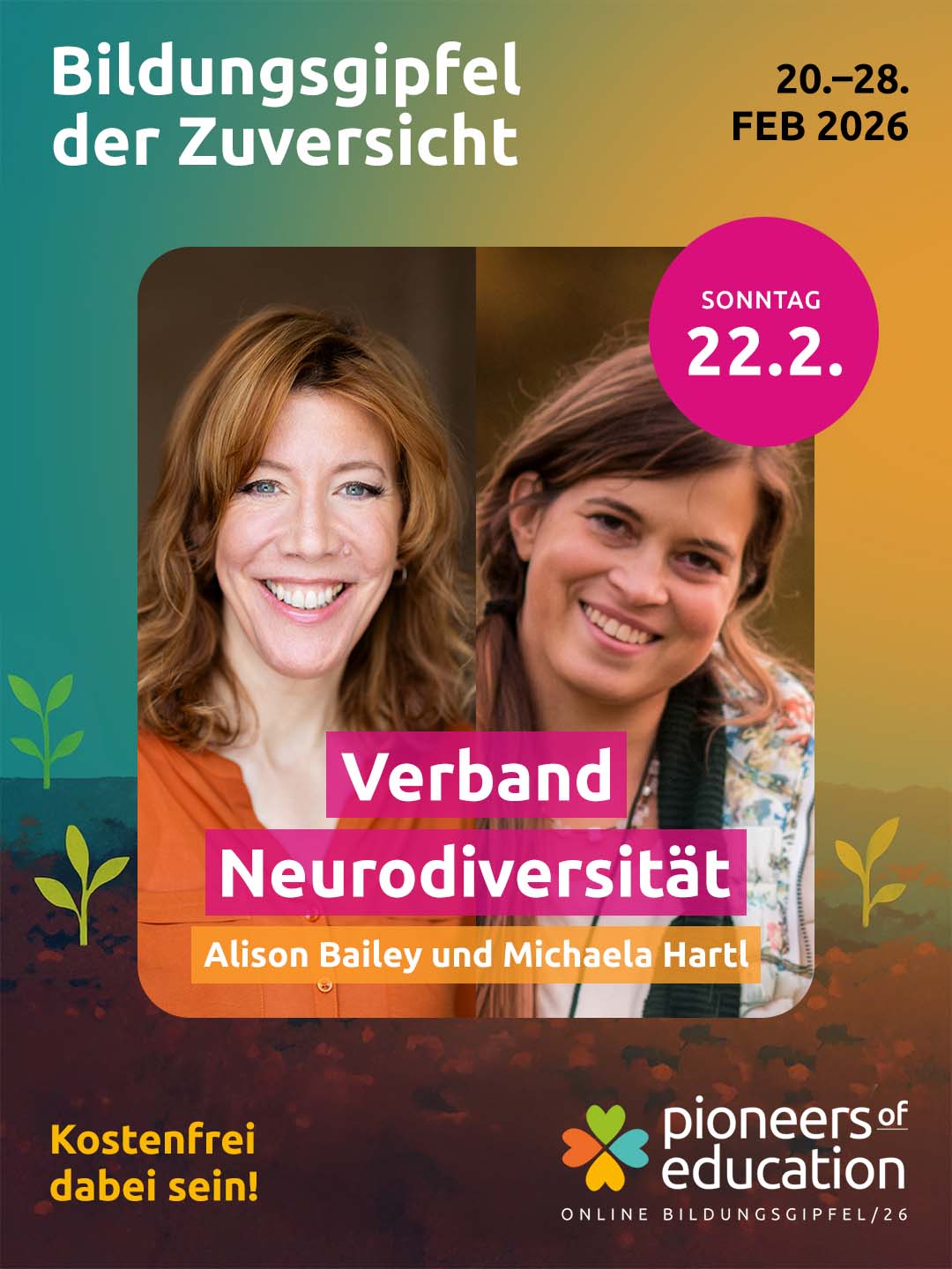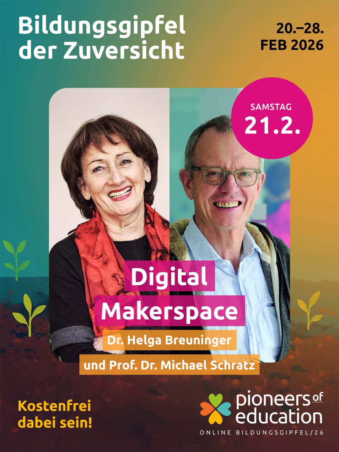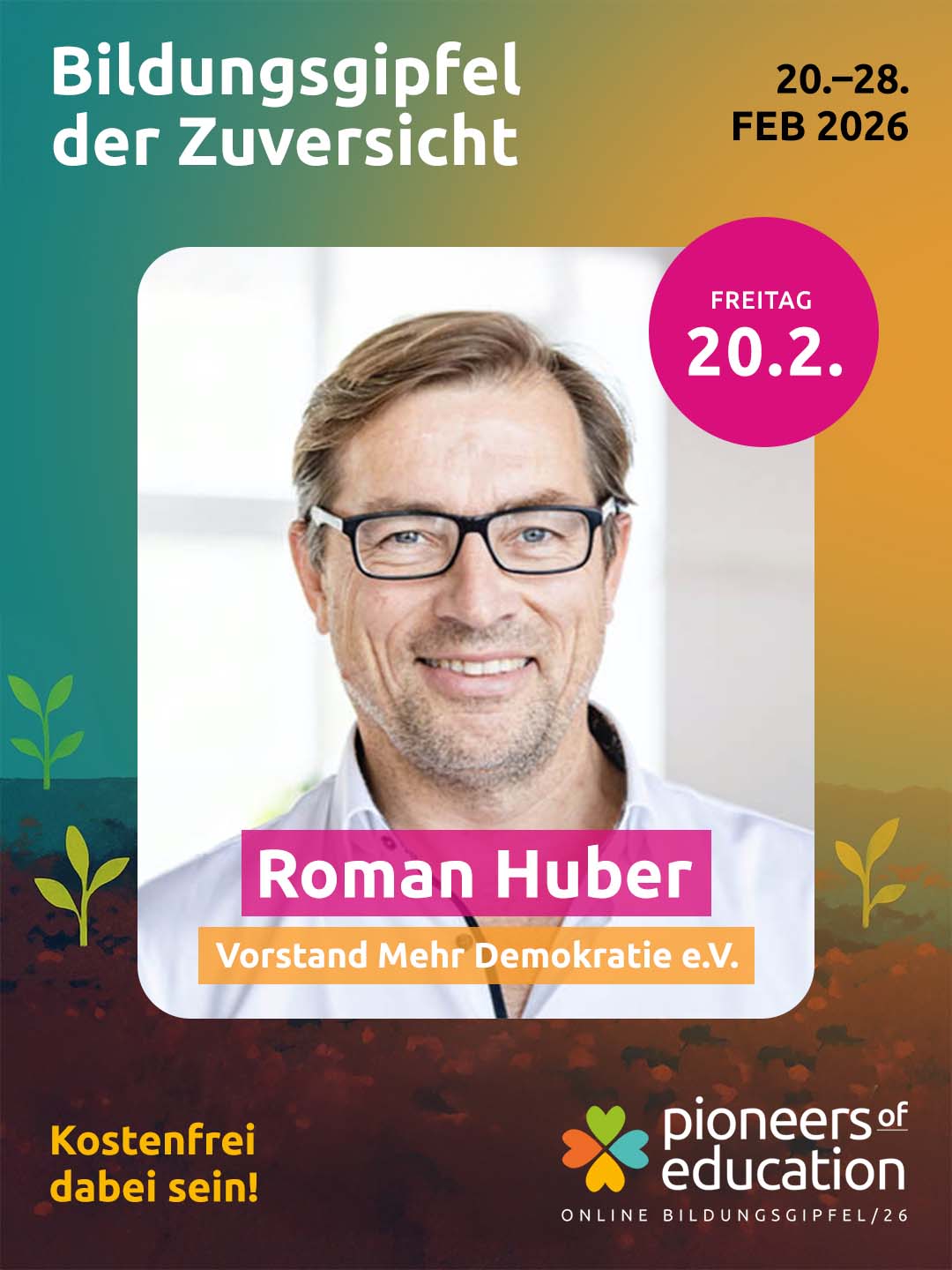 Vom 20.-28. Februar 2026 erwarten Dich beim Bildungsgipfel der Zuversicht 30+ inspirierende Interviews, praxisnahe Einblicke in Schulen und Workshops und lebendige Austauschformate – offen für Lehrkräfte, Eltern, Schüler:innen, Studierende und alle, die Bildung mitgestalten möchten.