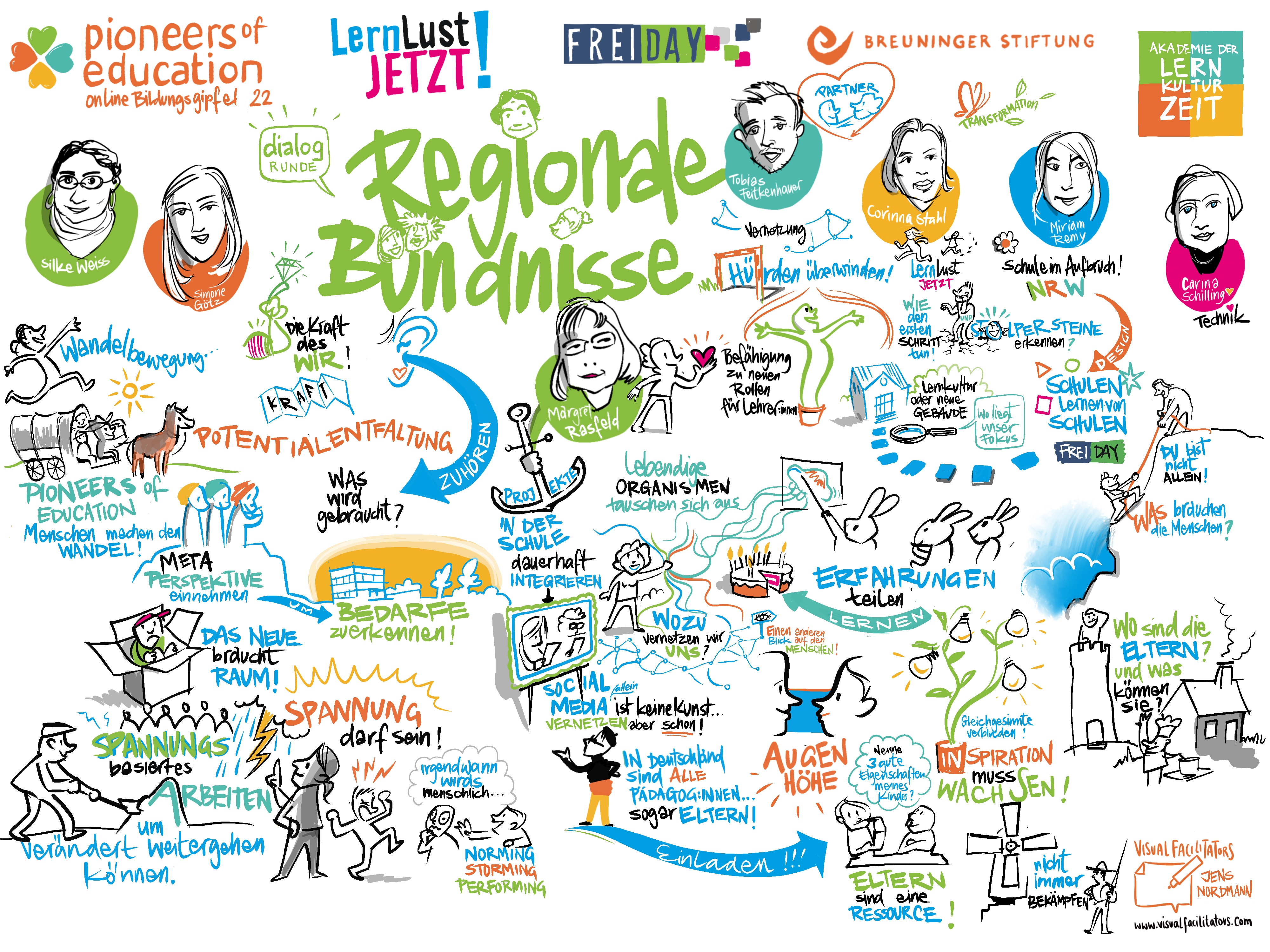 Bühne frei für regionale Bündnisse, die Schule und Gesellschaft von morgen voranbringen. FREI DAY, Lernlust.JETZT und die Regionaltreffen während des Pioneesr of Education Online Bildungsgipfel/22 stellen sich vor und lassen den Funken überspringen, der auch Dich begeistern kann, bei Dir vor Ort aktiv zu werden.